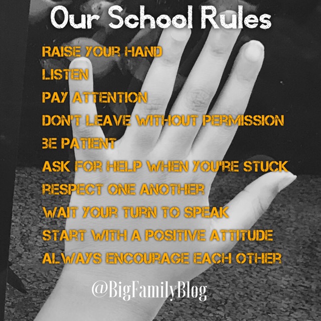 So there you have it, Our School Rules. I could definitely add about 20 more myself but these cover the vitals. Please feel free to share any rules you have or insight into ours in the comments below.
