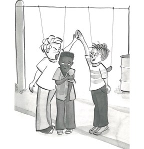 First things first, this is a picture book! There are no words. I didn’t realize it when we purchased it but we had a great time with it nonetheless. Since there was no text the kids and I created our own story using the imagery provided. It’s a story about a girl,Vanessa, who is bullied at school and how one person’s simple act of kindness and thoughtfulness can make all the difference. We all took turns guessing what was going on by looking at the pictures and filled in our own text. They loved it! The best part is this book can change each time you “read it”.