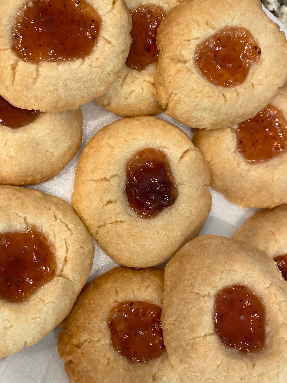 7. Use your thumb or the bottom of a teaspoon to form a well in the center of each cookie.