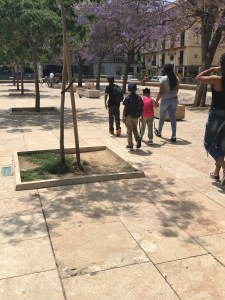 Part of our curriculum included Picasso and he was born in Malaga, so I definitely wanted the children to experience some of his work. So the first stop we hopped off at was Plaza de la Merced. This is where the Fundacion Picasso is located.