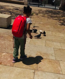 After we left the museum we explored the plaza a bit. We fed some birds, took pictures and then it was time for a snack.