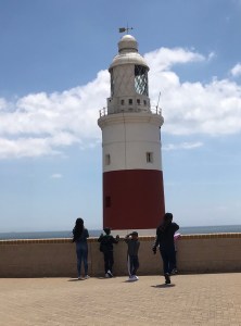 Our first stop was the lighthouse. Now the completely fascinating part about Gibraltar for us was how close it is to Africa. We could see the other continent from this one point. It was about 18 miles away. So cool.