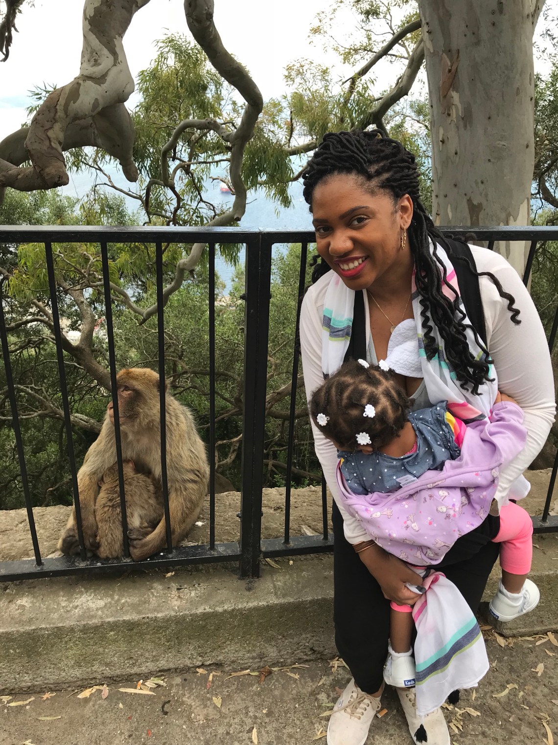 After we walked through the cave, it was time to go. The ship was leaving in 30 minutes and we still needed to drive back. As we made our way towards the bus, the tour guide pointed out one of the apes nursing her 1 year old baby. I too was still nursing my 1 year old baby and happened to be wearing her at that moment. I couldn’t pass up the opportunity to take a picture with the mama ape, so I did!!