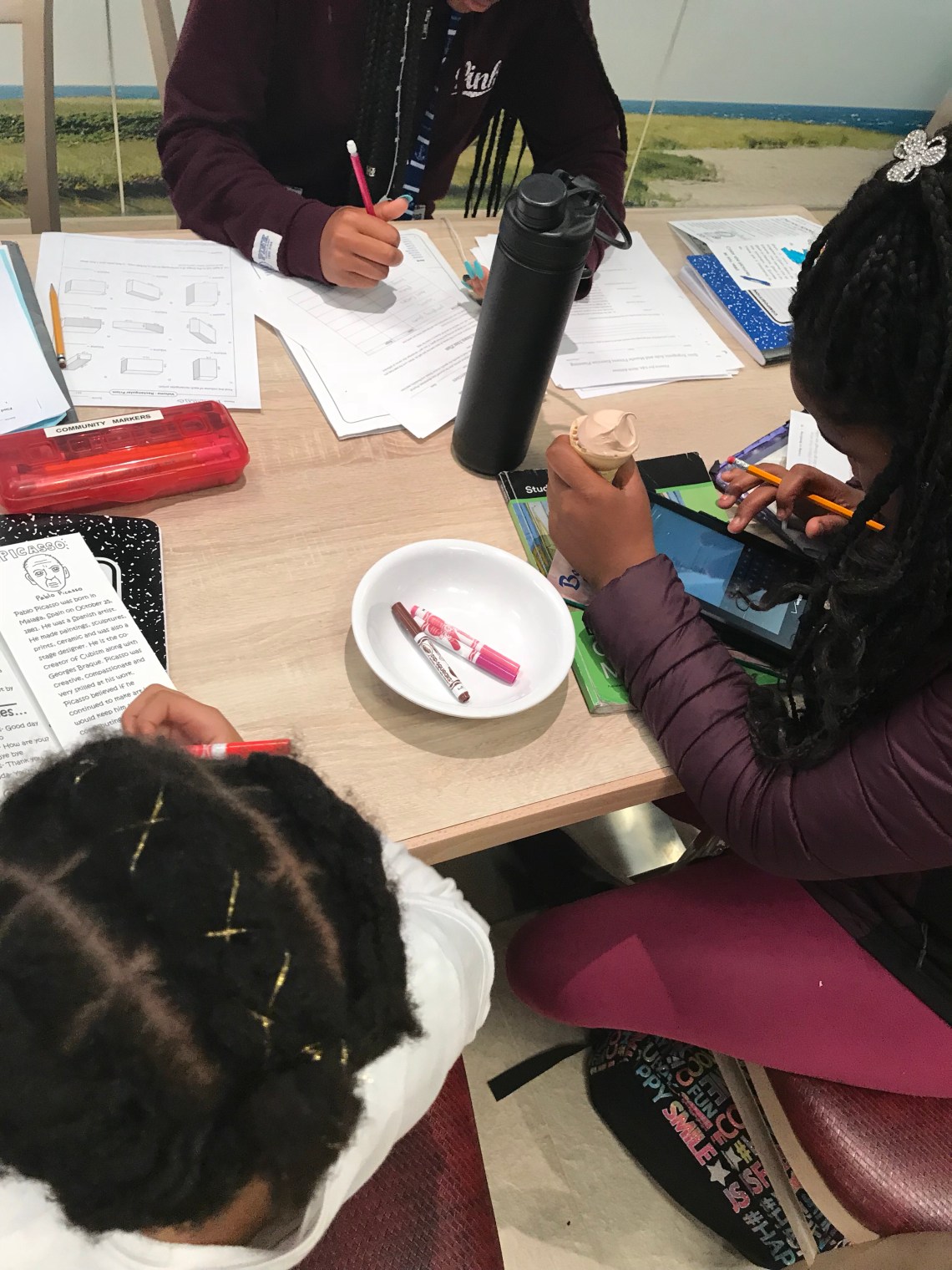 We spent the weeks before our trip covering Spain related topics. We learned how to count in Spanish, how to identify a strait, and studied continents. I also made a pamphlet for everyone to reference and complete while we were away. As for school supplies, I didn’t pack much. They each had their notebooks with their pamphlets inserted in the back, a community box of pencils and markers, our reading comprehension cubes, sight word flash cards, and my oldest had his chapter book for reading.